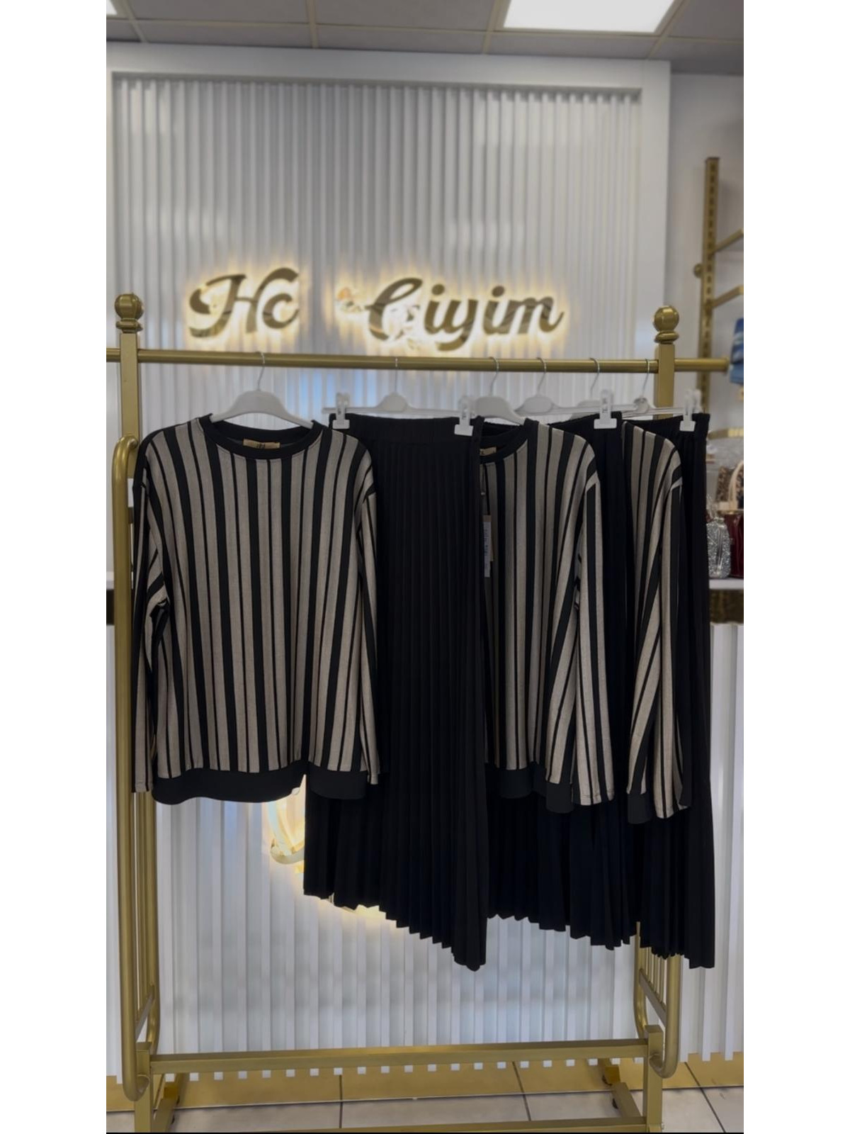 ÇİZGİ DETAYLI ETEKLİ TAKIM
